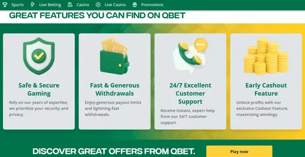Our promotions are built around clear deposit matches, ongoing cashback, and game-led events throughout the year. The main welcome offers cover casino, live casino, and sports, while additional time-limited promos are always visible on your Promotions page. If you spot a Qbet casino no deposit bonus listed there, check the eligibility rules and expiry before opting in.